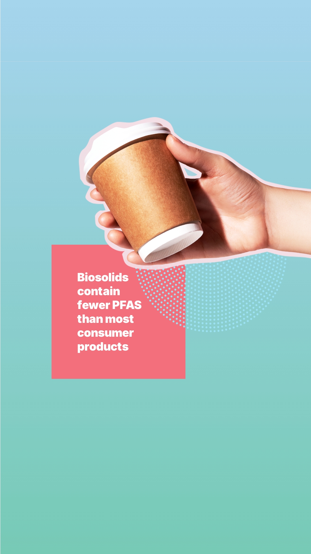 Caption: Most of the consumer products you use each day contain much higher levels of PFAS than biosolids do. Learn more at biosolidsexplained.org