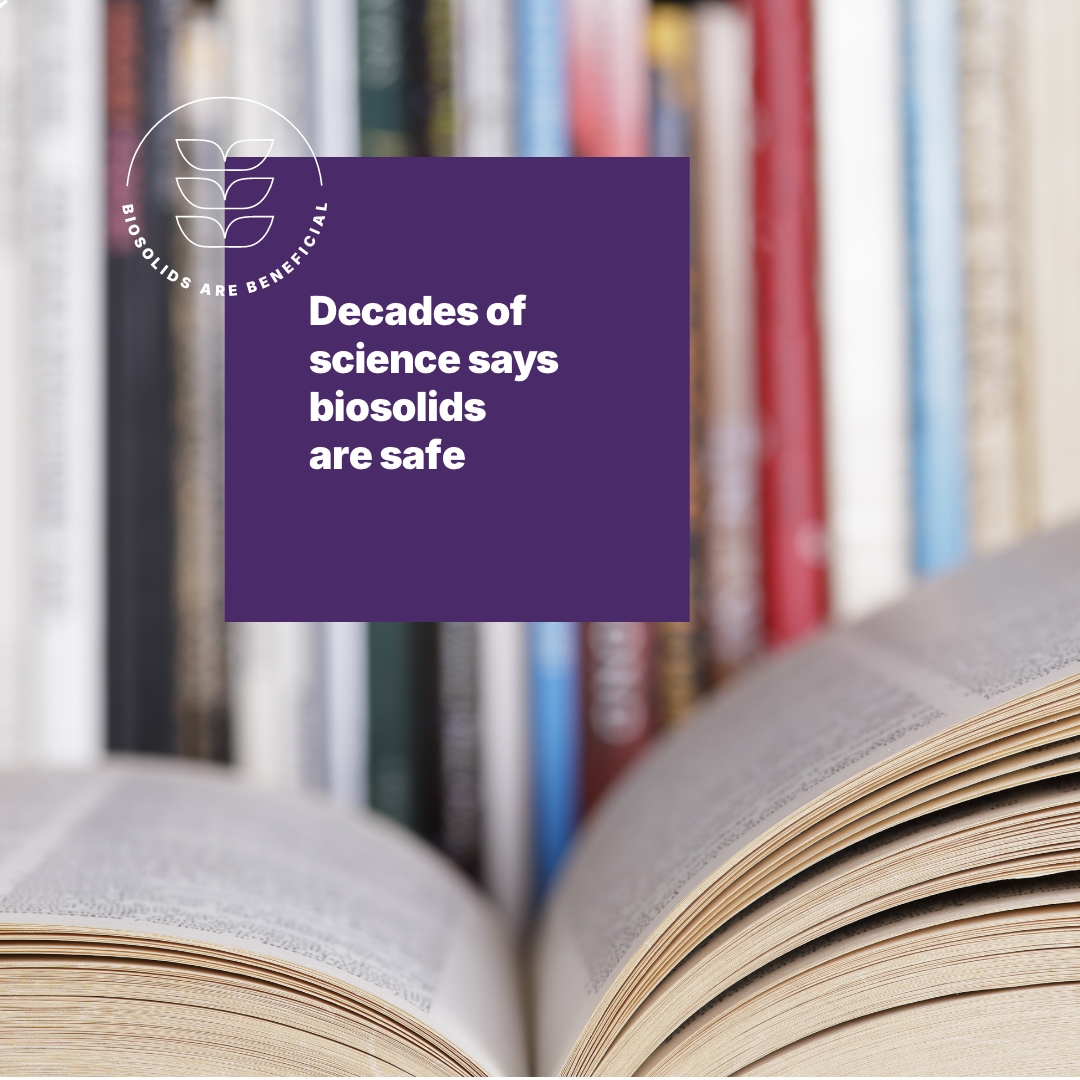 Caption: Thousands of research publications over the last 45 years have found that using biosolids as fertilizer presents “negligible risk”. Learn more at biosolidsexplained.org