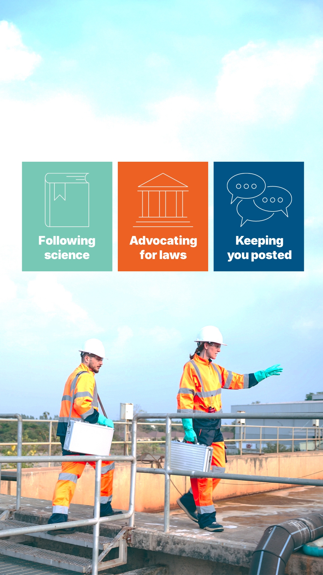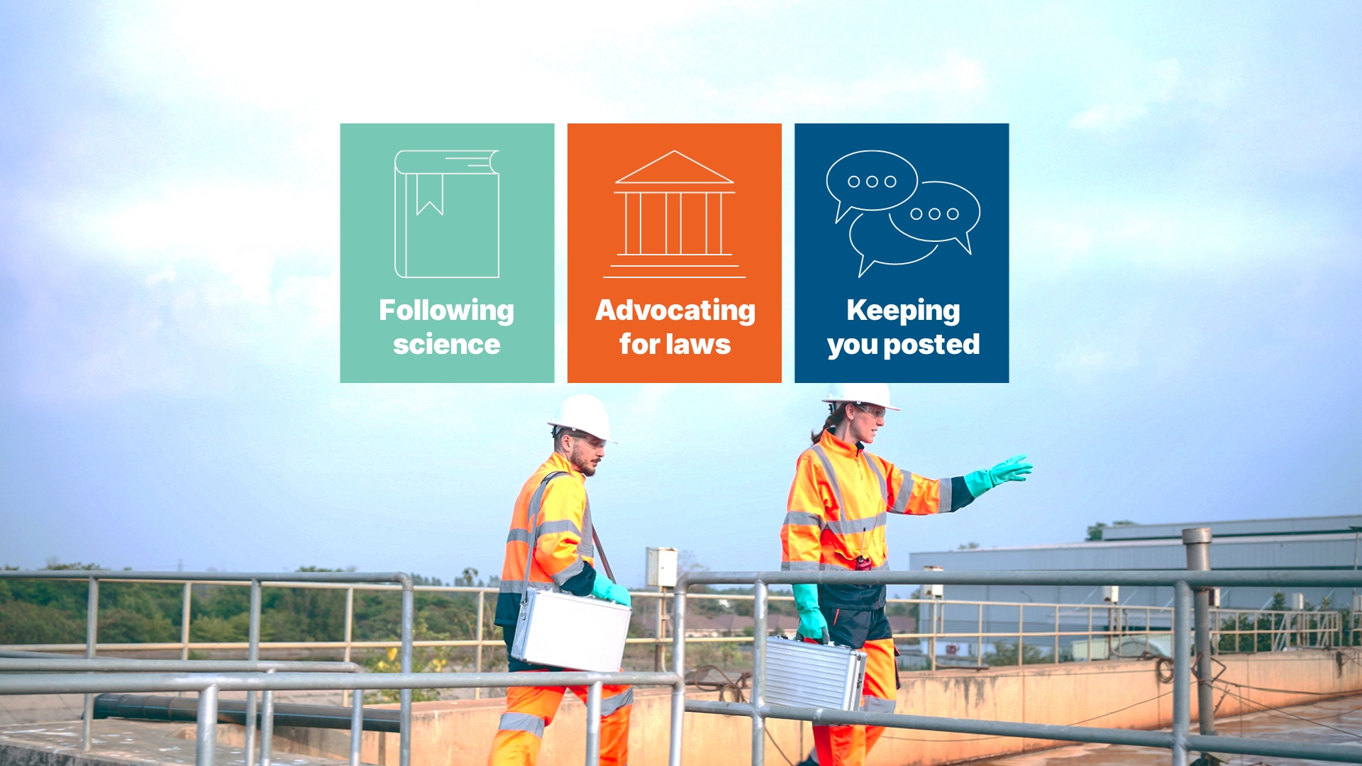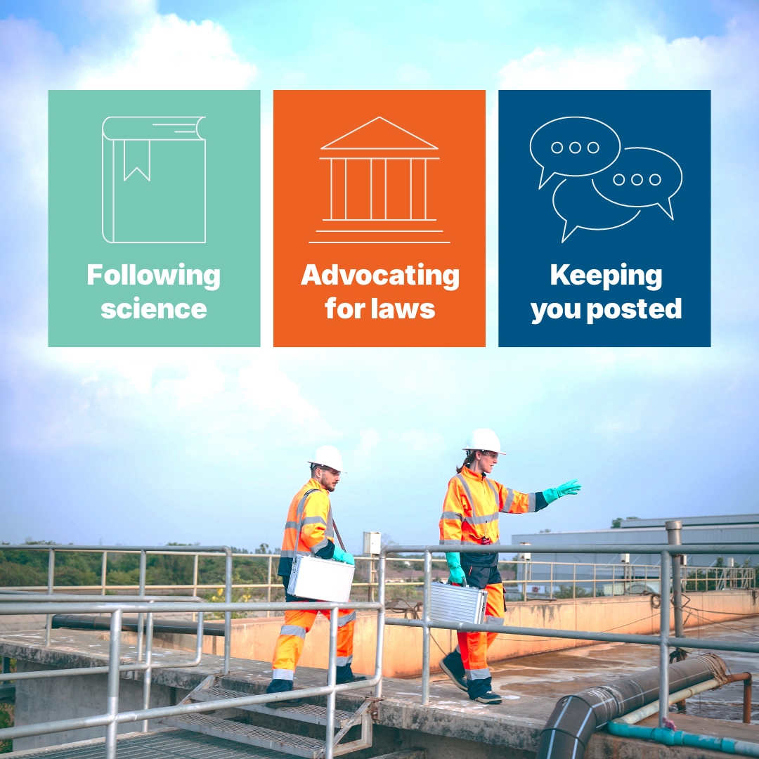 Caption: We did not create PFAS, but we receive wastewater that contains them, so we are working on solutions to protect you and our environment. We have, and continue to, follow the evolving science on PFAS, advocate for laws that focus on reducing everyone’s PFAS exposure, including eliminating PFAS at the source, and keep you posted about what we learn. Learn more at biosolidsexplained.org